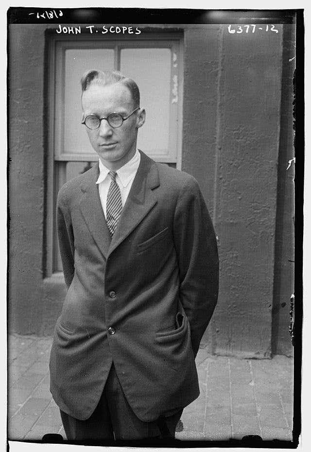 At first glance the subject matter seemed to be the Scopes Trial of 1925 in Dayton, Tennessee. The state legislature had passed a law outlawing the teaching of evolution in public schools. The ACLU wanted to challenge the law, and John T. Scopes, a teacher, agreed to be arrested for having evolution material in the classroom. William Jennings Bryan, an evangelical populist and a three-time presidential candidate, and Clarence Darrow, a renowned first-amendment and labor lawyer, were the prosecutor and defense attorney, respectively. The trial made international headlines. Bryan died five days after the trial ended.