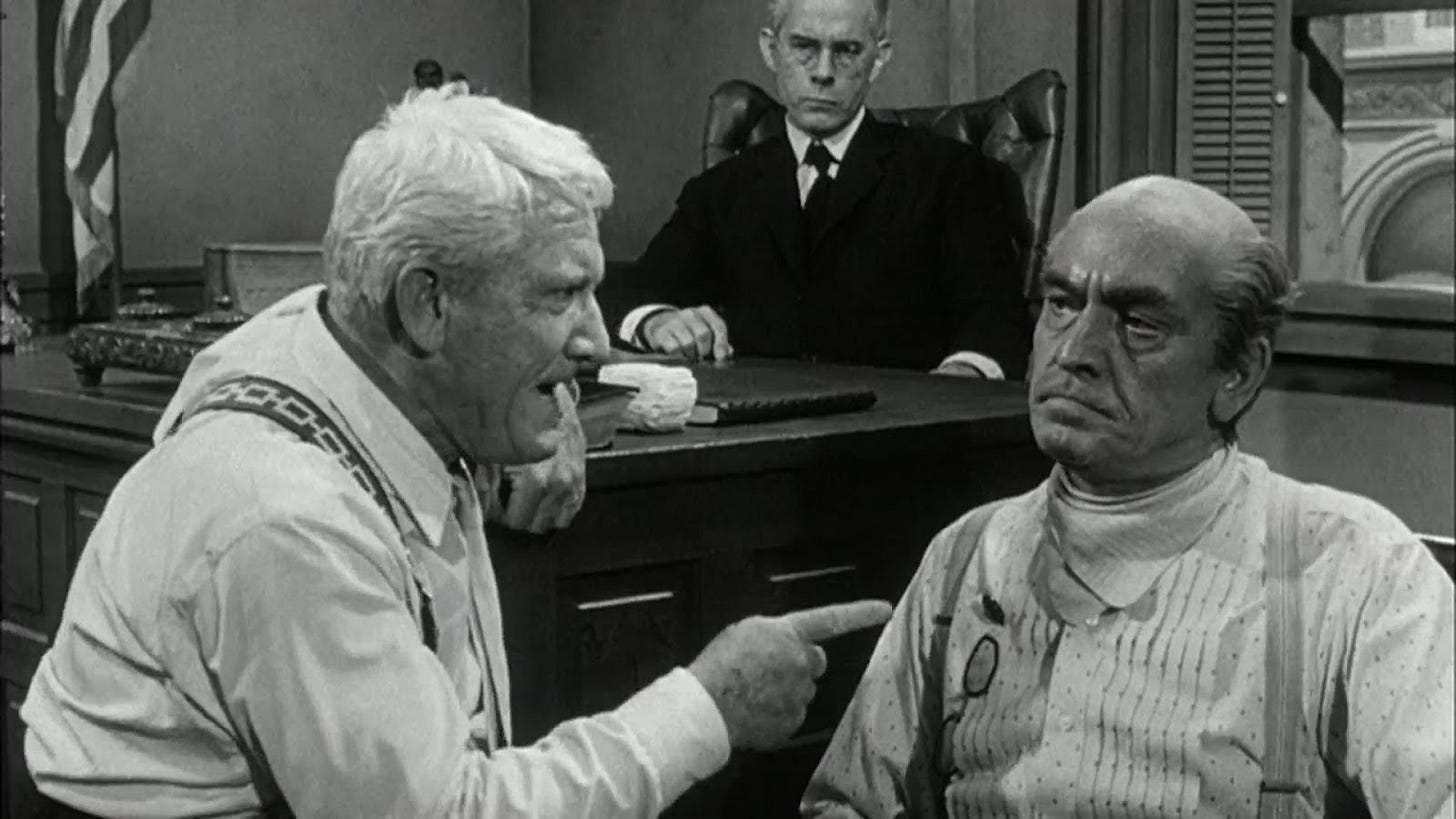 Drummond asks Brady — does a sponge think? If God wants a sponge to think, Brady responds, it thinks. Drummond points at Bertram Cates: